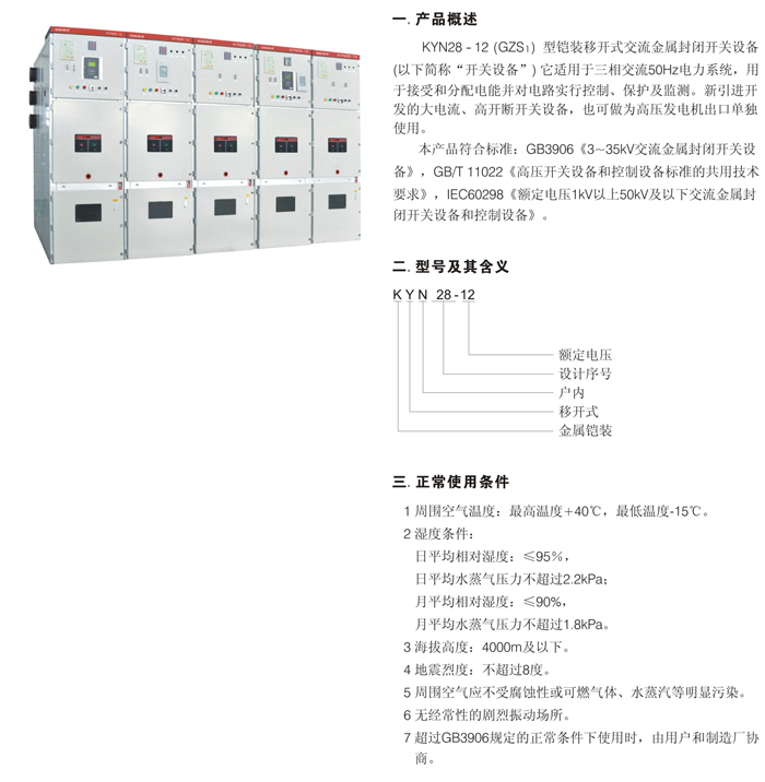 KYN28-12 型鎧裝移開式交流金屬封閉開關設備