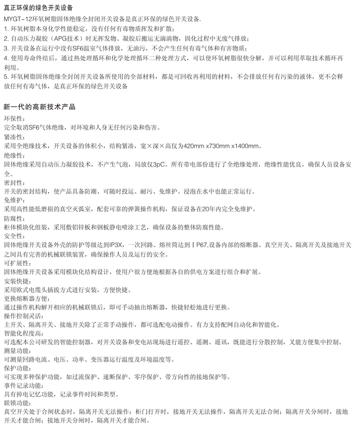 MYGT-12C/630-20 MYGT-12F/125-31.5 MYGT-12V/630-20型固體絕緣環(huán)網(wǎng)柜設(shè)備
